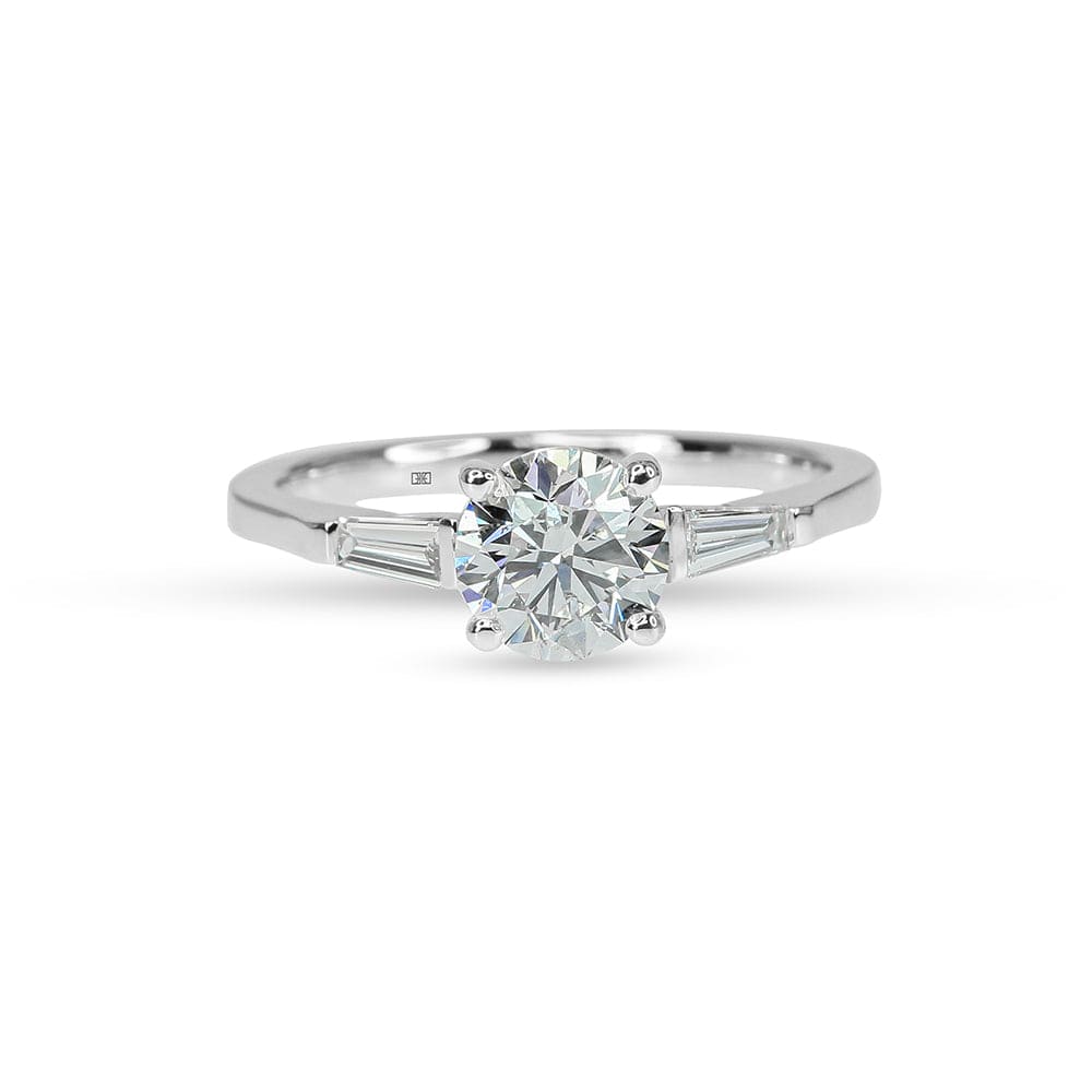 Victoria Tri-Stone Tapered Baguette Round Engagement Ring