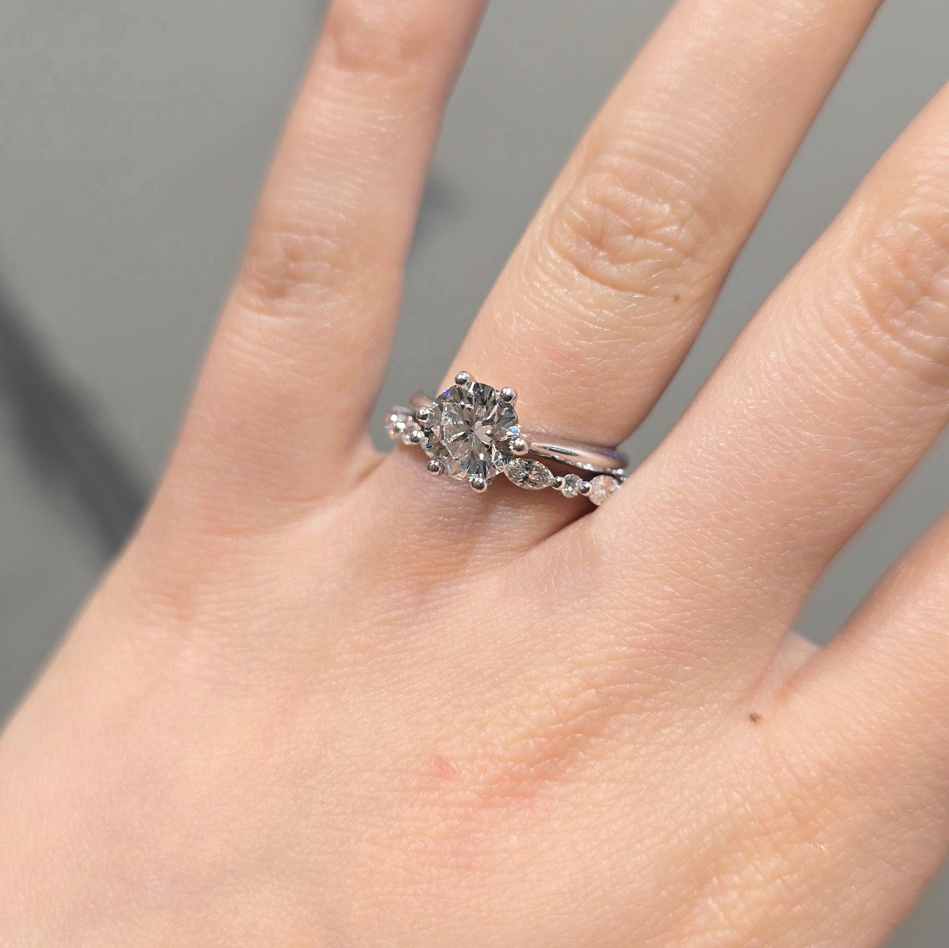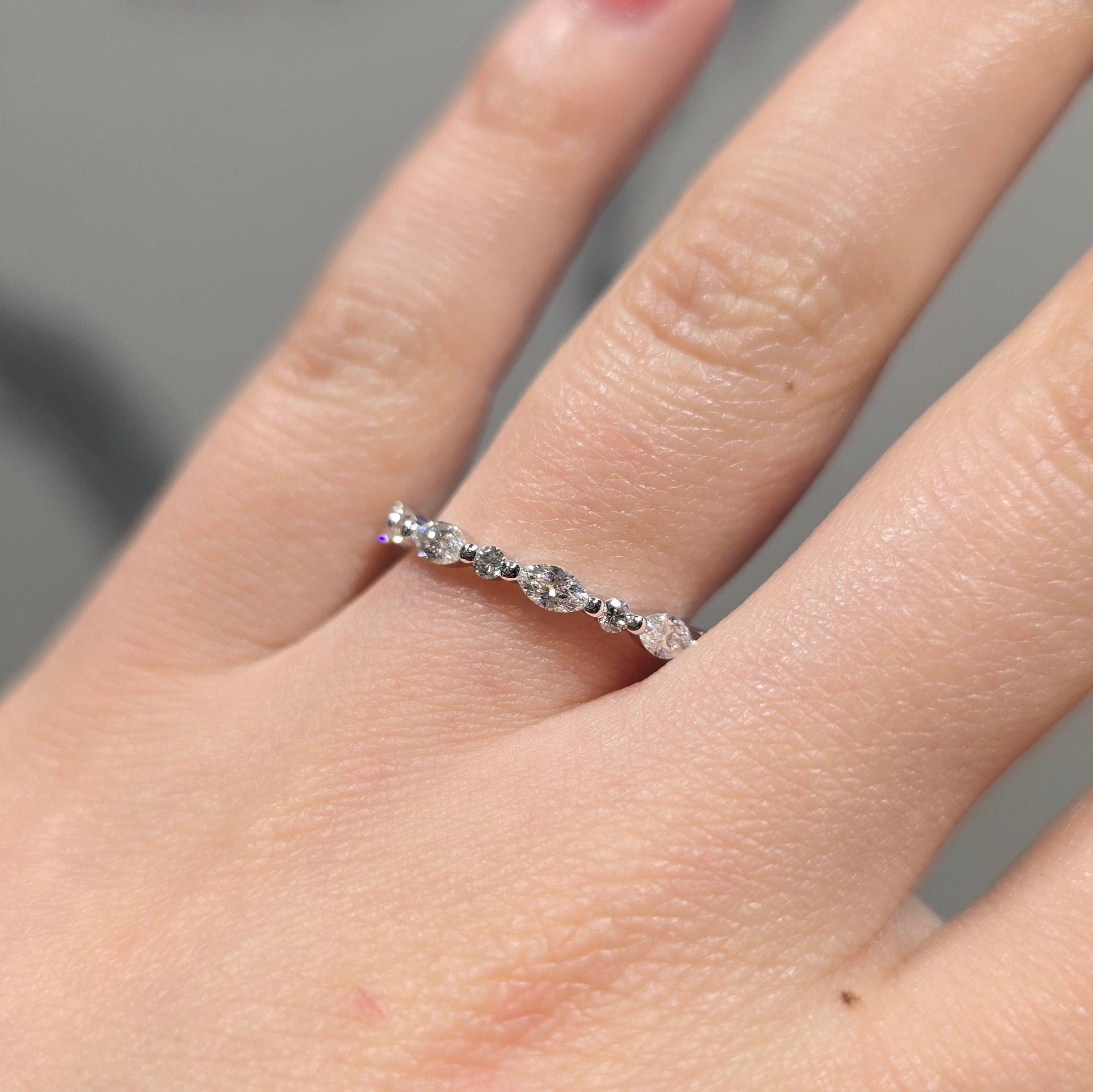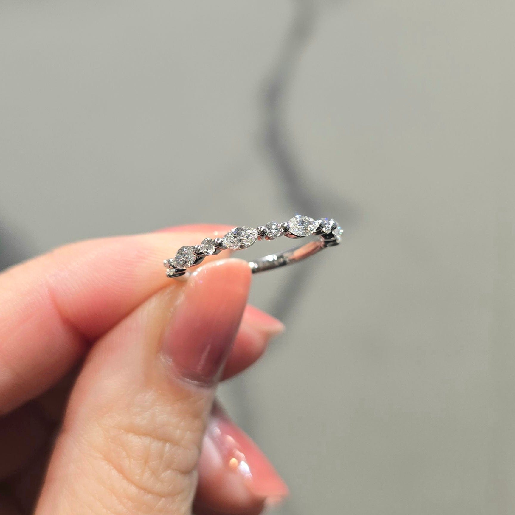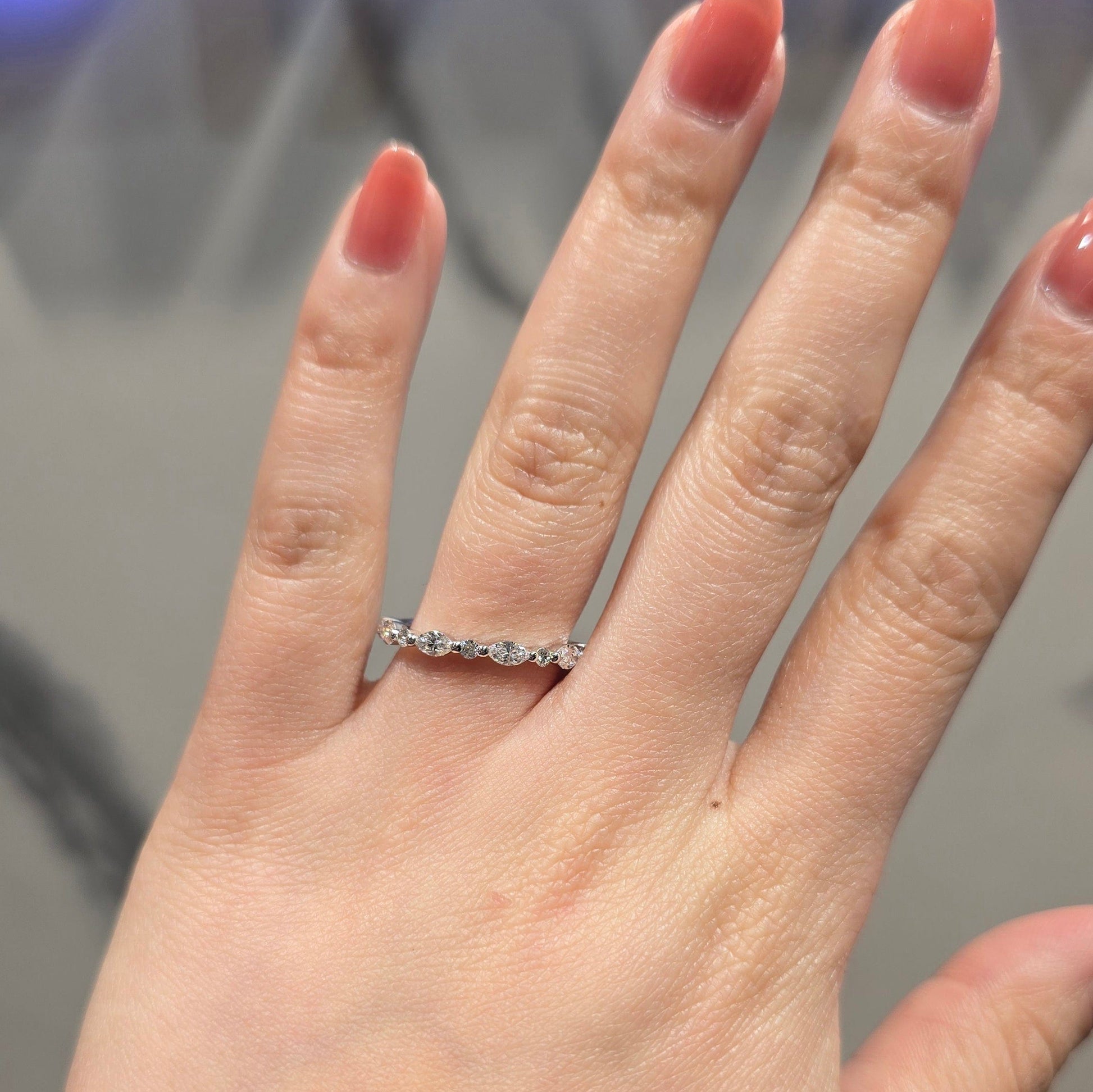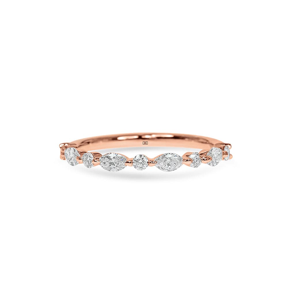 The Amore Round & Marquise adds a romantic touch to any look, featuring round and marquise diamonds arranged in a delicate band with diamonds claw set.