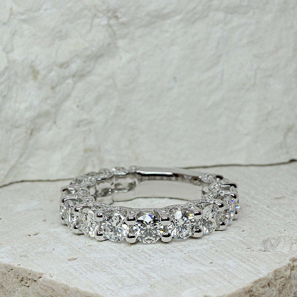 If you’re after a piece that wows look no further. Our Chelsea Encrusted U Shape Wedding Band is stunning jaw dropper with beautiful Round Brilliant Cut Diamonds across the band and also encrusted on its side profile along the U shape gold. This is a drop dead gorgeous piece that will surely turn heads.