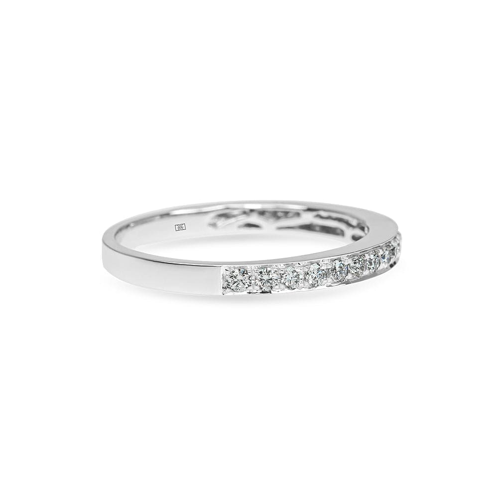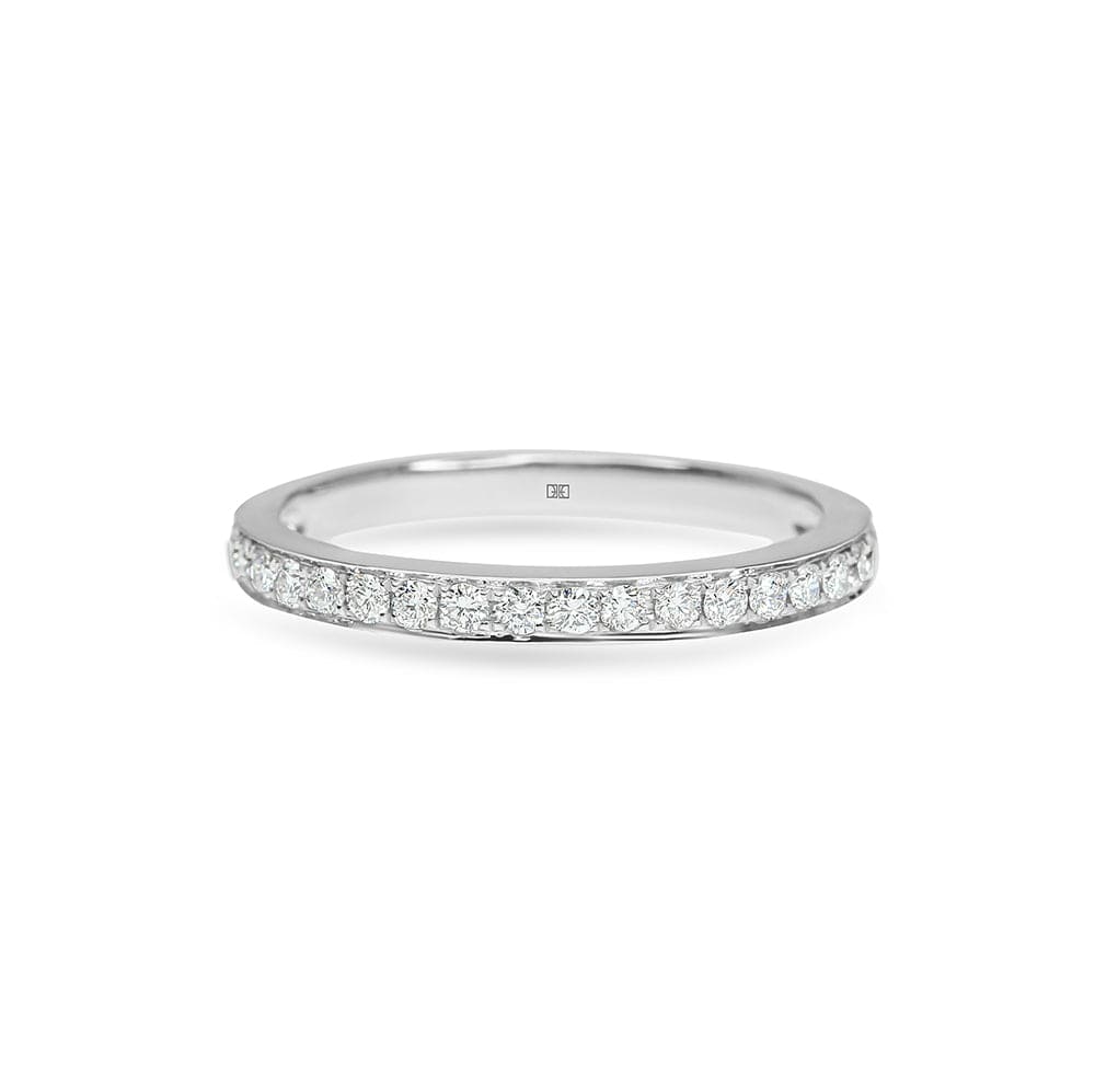 Our Bezel Pave Diamond Wedding Band is crafted with a channel setting and round diamonds, this diamond wedding band is designed to last a lifetime.