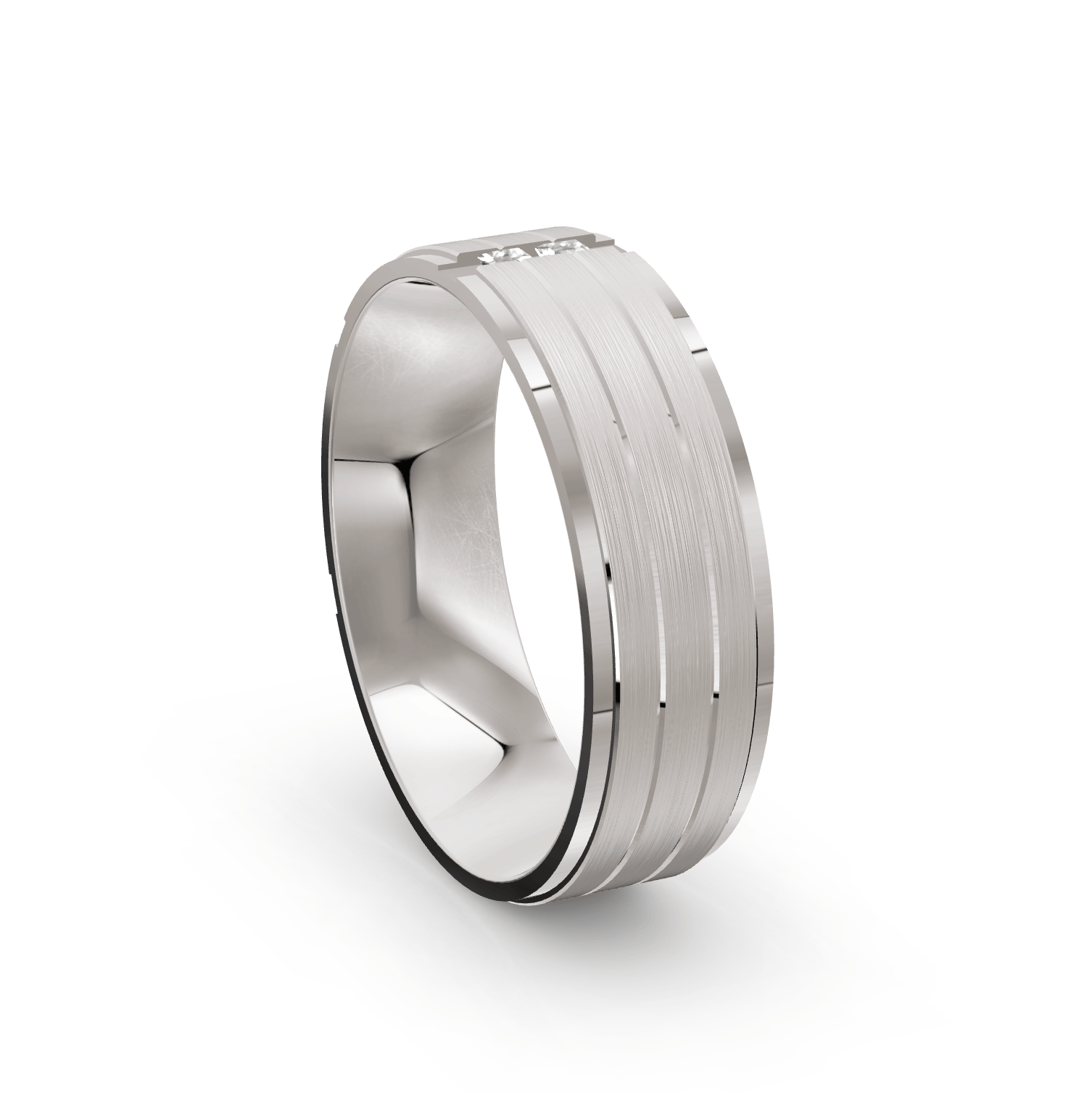 The Harlow is handsome from all angles, with 9 Natural Diamonds set in 3 vertical strips. The band has a brushed finished with two carves, finished off with a polished edge.