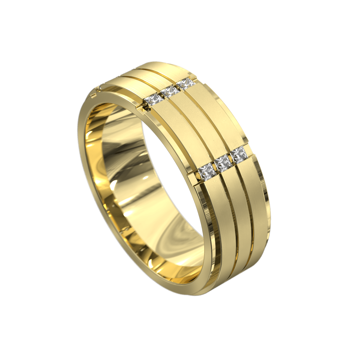 The Harlow is handsome from all angles, with 9 Natural Diamonds set in 3 vertical strips. The band has a brushed finished with two carves, finished off with a polished edge.