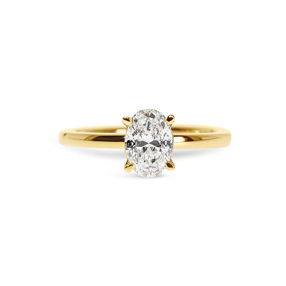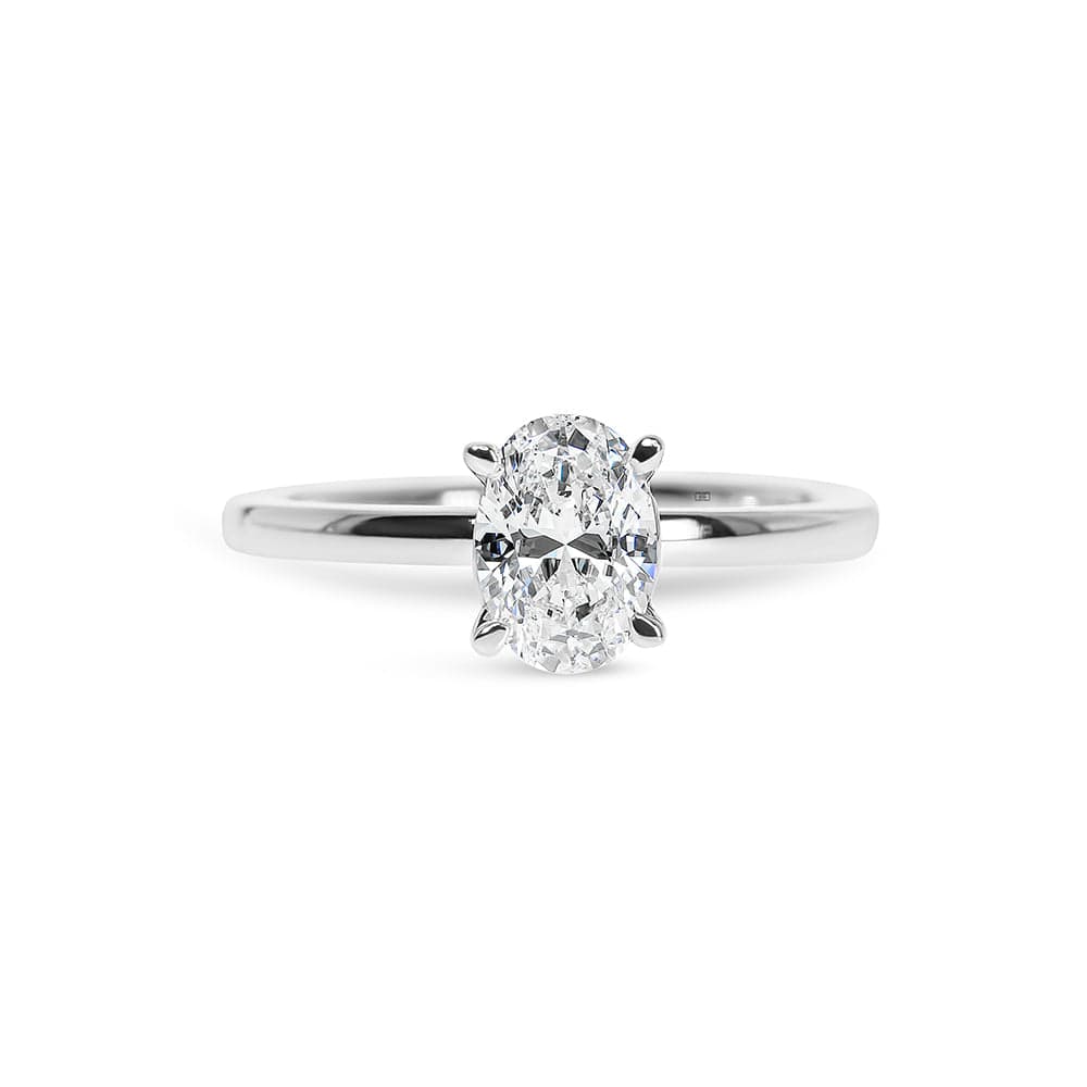 Discover timeless beauty with our Four-Prong Oval Diamond Engagement Ring. The exquisite oval diamond takes center stage, held securely by four prongs, creating a classic refined look of sophistication.