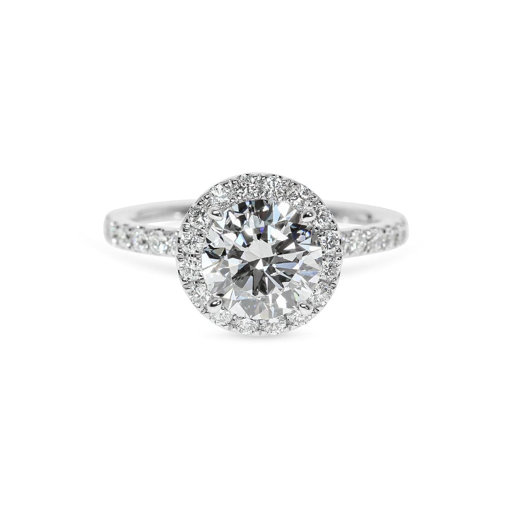 Celebrate the brilliance of your love with this luxurious engagement ring featuring a Brilliant Round Diamond surrounded by a Halo of glistening smaller diamonds, encapsulating the essence of romance and sophistication.