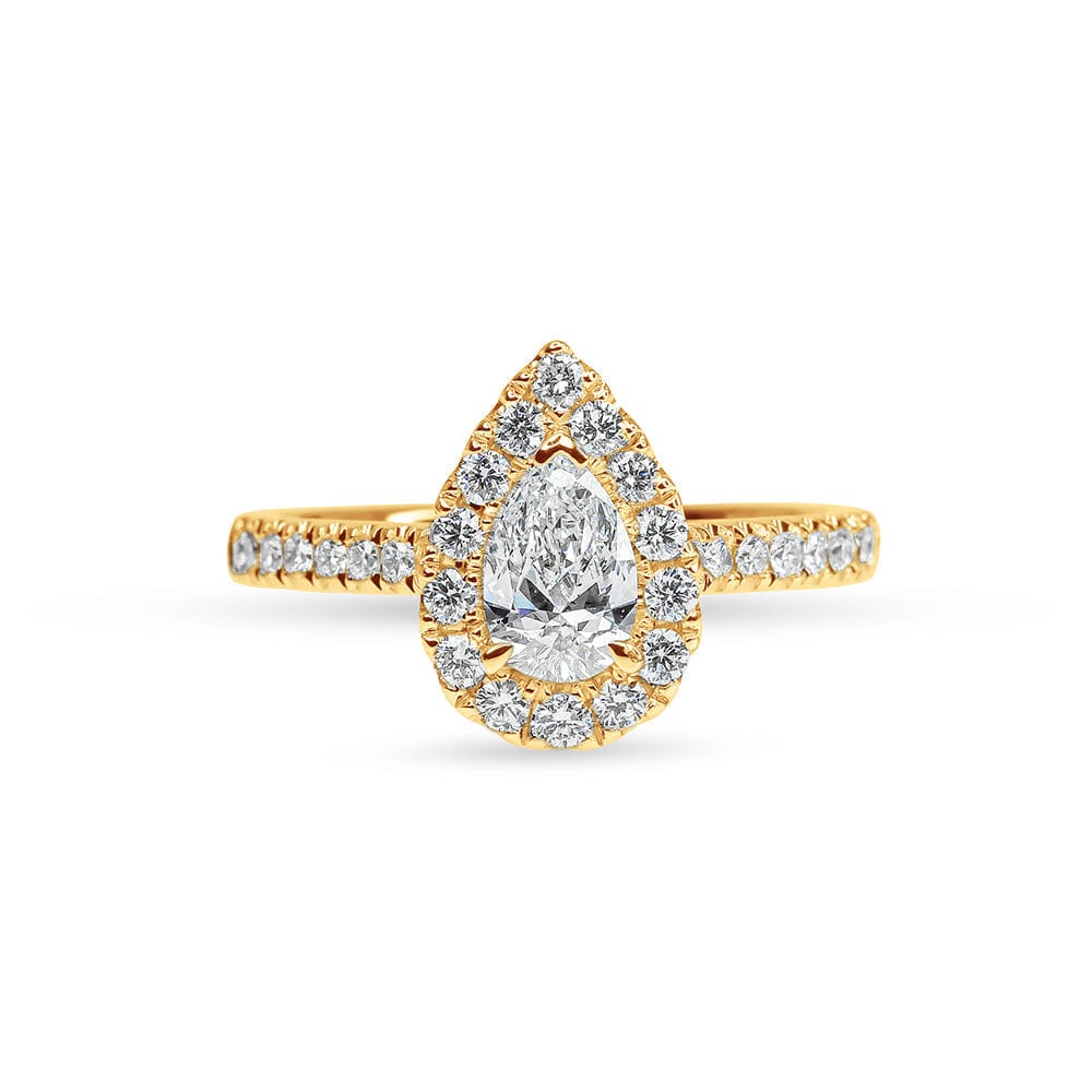 Pear Shape Cut Diamond with Halo & Sidestones Engagement Ring.