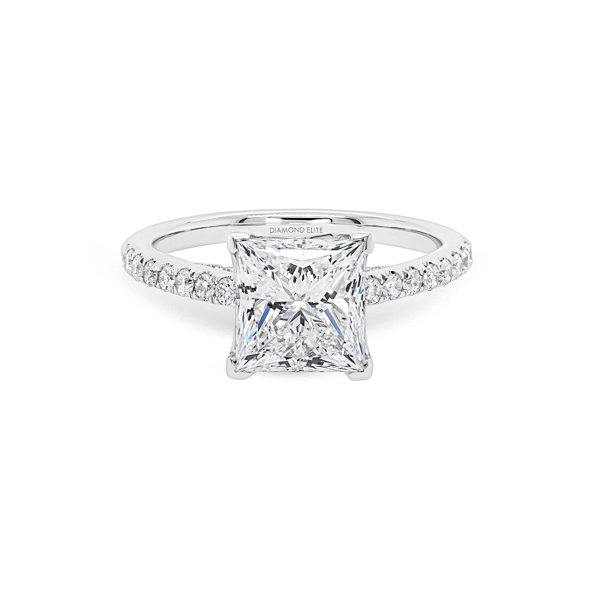 Pictured with 2.00ct Princess Cut centre diamond.